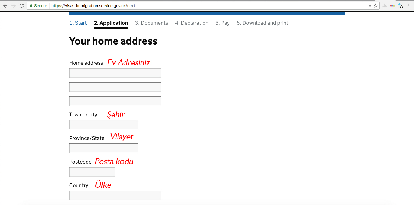 4-) Önceden 7 sayfa bir başvuru formu indiriyordunuz ve kendi başınıza doldurmanız gerekiyordu. Artık işleri kolaylaştırmışlar. Başvuru formundaki sorular karşınıza sayfada ilerledikçe teker teker geliyor. İsterseniz sayfada geriye dönüp verdiğiniz cevapları düzeltebiliyorsunuz. Yani şu an önünüzdeki sayfa, aslında başvuru formunun kendisi. 🙂