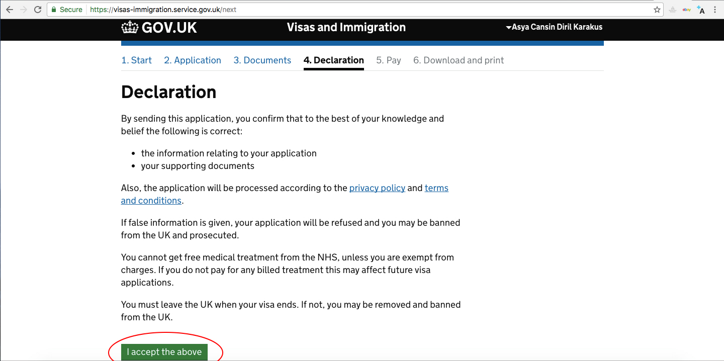gov.uk/standard-visitor-visa adresinde ki adımları izlerken şöyle bir yazı mevcut,