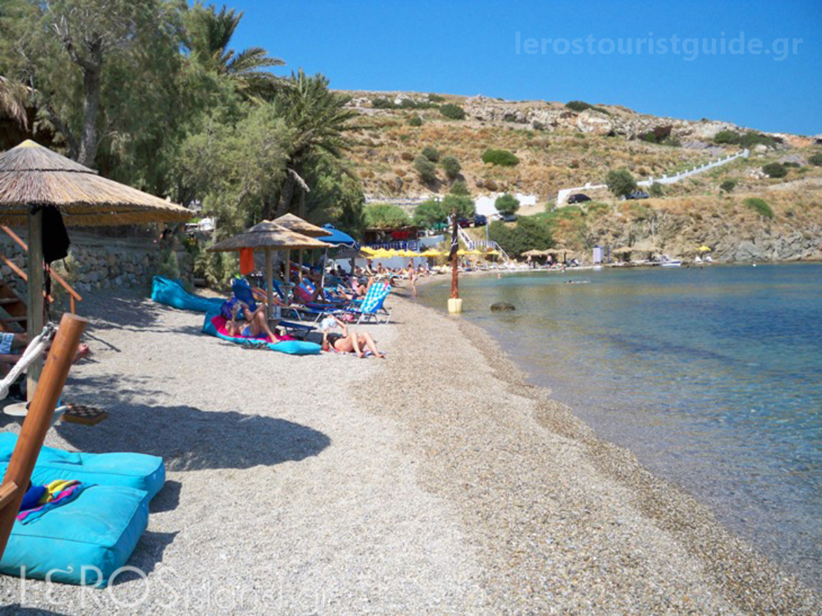 Kum ve çakıl karışık sahili, turkuaz deniziyle Leros’un popüler plajlarından biri. Son yıllarda turizmin ağırlık kazandığı bir bölgede olmasına rağmen sakin bir plaj. Çevresinde birçok tesis bulunuyor.